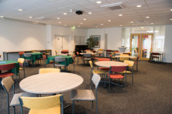 De zaal is zeer geschikt voor het geven van presentaties, cursussen en grotere bijeenkomsten.