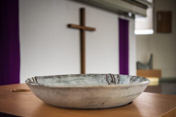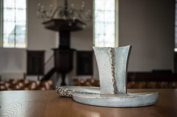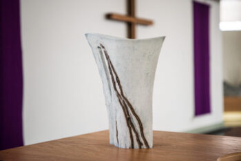 In 1999 ontworpen en gemaakt naar een conceptueel idee van ds. Freek Schipper en eveneens gefinancierd met een gift uit de gemeente. In samenspraak met ds. Schipper en de liturgiecommissie heeft Fija een tweedelig object ontworpen. Het hoge deel verwijst naar God, waarbij de dalende lijn symboliseert dat God naar de mensen toekomt.