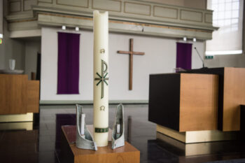 Naast de grote ‘Paaskaars’ staan twee kleine kaarsen in keramische houders. Het is gebruikelijk dat kinderen hun eigen ‘’kindernevendienst’ vieren. Zij gaan tijdens de dienst de kerk uit. Elke groep kinderen neemt een kaars mee, die wordt aangestoken aan de Paaskaars. Dit ‘licht’ symboliseert verbondenheid met de gemeente en komt ook voor het einde van de dienst weer met de kinderen terug in de kerk. De vorm van de kaarshouders associeert aan het liturgisch object en is tevens zodanig ontworpen dat de kaars niet uitwaait tijdens het lopen.